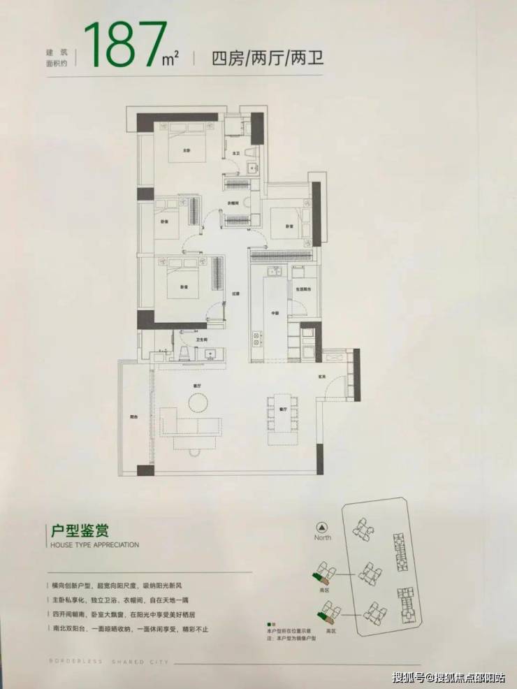 118㎡户型的放大版,3/4单元的西南向的中间位置。户型整体尺度会比118㎡的大一点,厨房多个生活阳台