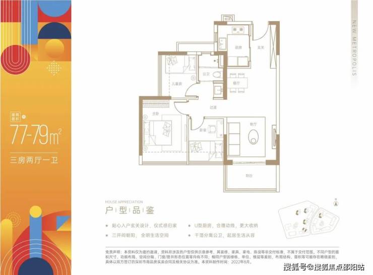 建面约77~79㎡三房两厅一卫