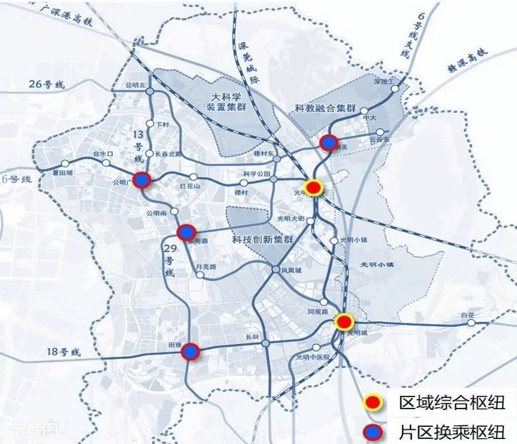 《光明区十四五规划》提出:依托光明站 TOD开发,高强度开发形成垂直城市簇群,围绕站点建设“一岛一园三中心”,配套建设一批商业综合体、高端写字楼、高端商务酒店,打造集合科学展馆、国际会议中心、交通枢纽和休闲中心于一体的“科学方舟”。