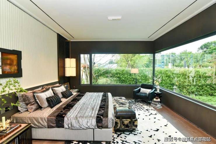 不仅如此,主卧套间面积接近30㎡,空间开阔,并且带有270°L型观景飘窗,躺在床上,也能享受IMAX级天幕视野!