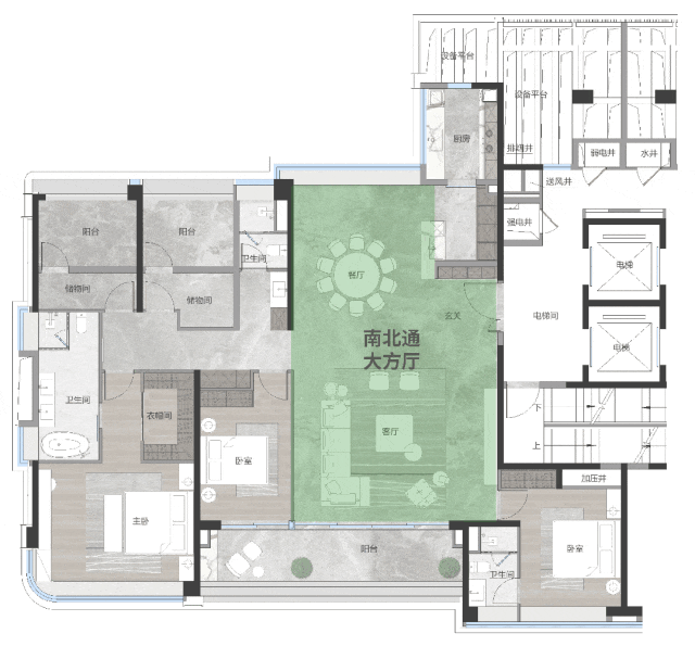 全屋共设2个套间,空间使用率高,可供不同家庭成员充分灵活利用。