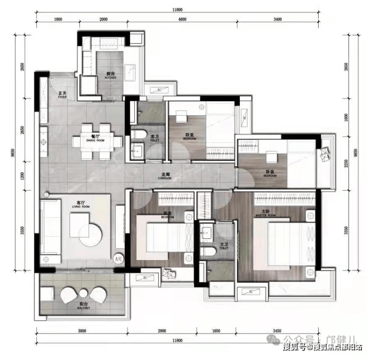 建面约118㎡(4室2厅2卫),总价约183万元起。