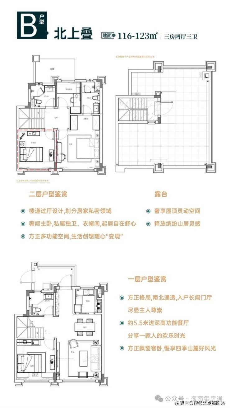 北上叠:建筑面积约116-123㎡三房两厅三卫