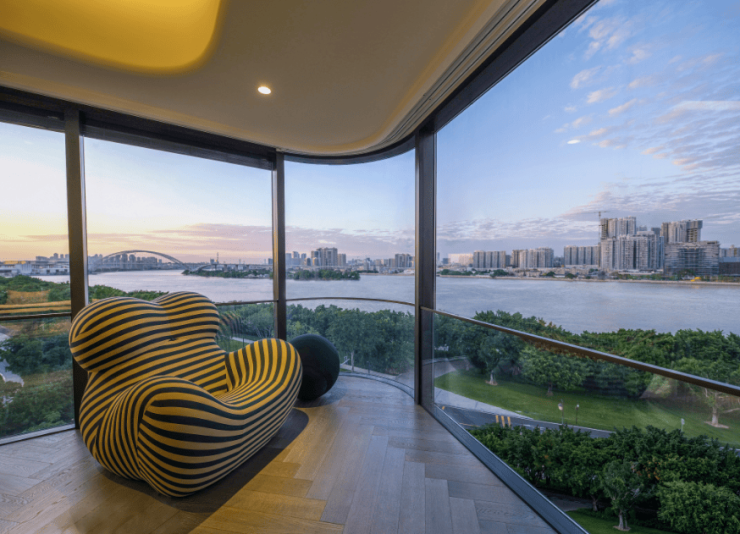 从阳台往外看的第一眼就是繁华城景与江景汇聚的城市眼界,城市繁华与江景静谧兼得,象征事业与生活的平衡圆满。