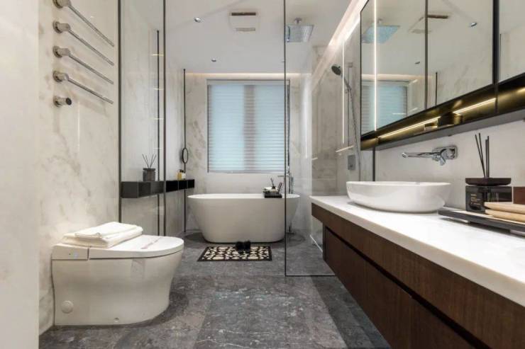 对了,主卧面宽足足有约8米,配以超大景观阳台、步入式衣帽间、双台盆带浴缸的超大卫生间,酒店总统套房也不过如此。