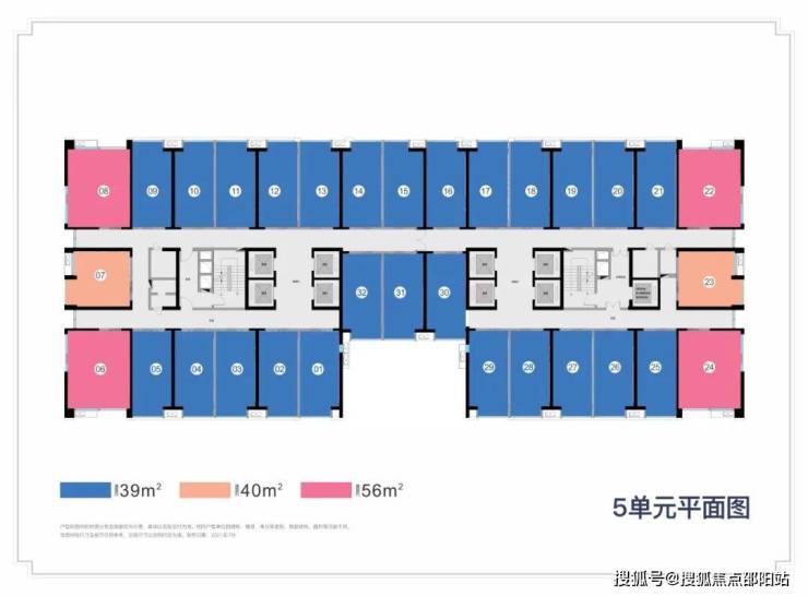 公寓部分,四单元46层,9梯34户;五单元47层,9梯32户,层高2.95米。