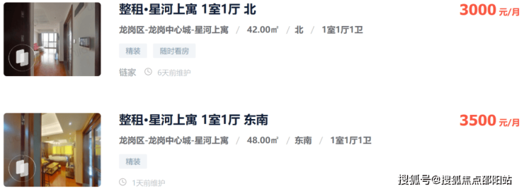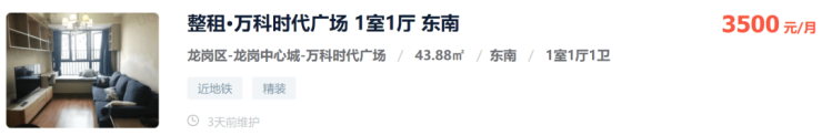 而项目周边的公寓,以万科广场、星河上寓为例,约42-48平房源,租金普遍在3000-3500元/月;约67-68平房源,租金普遍在3800-4500/月。