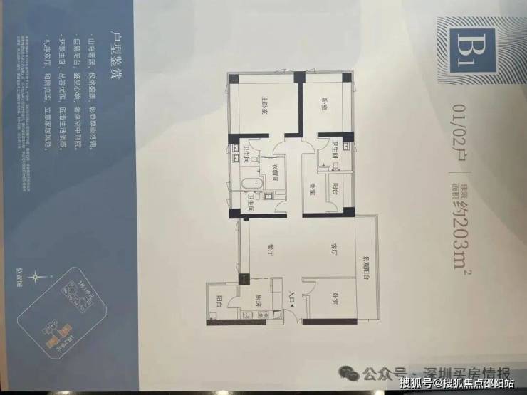 【124㎡的3+1房2厅2卫】1栋户型,竖厅格局,LDKB一体化设计,动静分区,主卧套间设计,还有一个多功能间可以做书房,U型厨房,公卫三段式分离,得房率:72.07%(不含赠送);