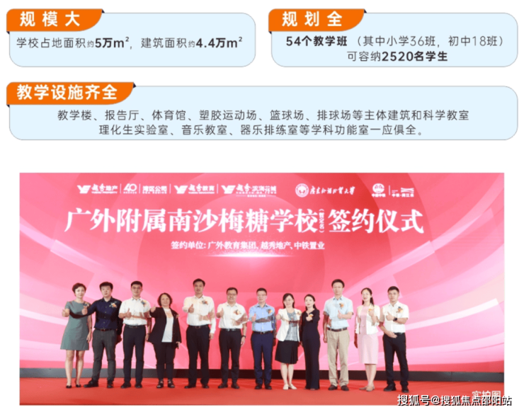 中铁置业(广州)有限公司携手广外教育集团共建广外附属南沙梅糖学校(暂定名),其距离中铁·阅江来仅约500米,是一所54班九年制公办国际双语学校。