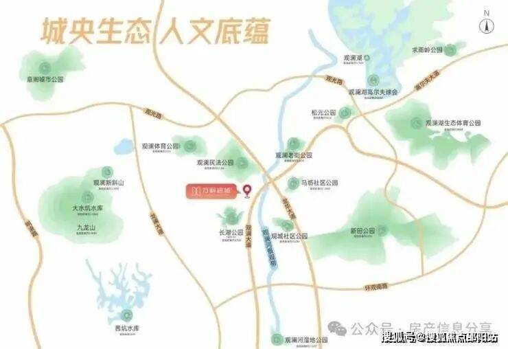 项目周边汇集五大公园,观澜湖生态体育公园(运营)、观澜民法公园、观澜体育公园(在建)、观澜河湿地公园、长湖公园(规划)及茜坑水库。
