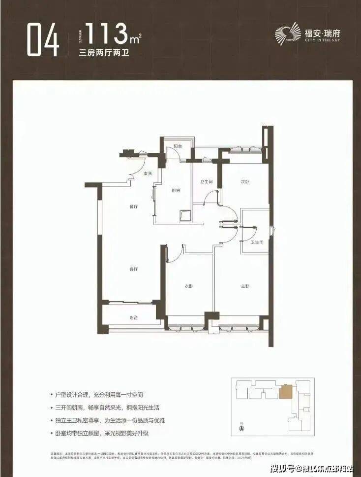 福安瑞府全套户型图已经公示,主推建面约97-98-112-126-143㎡的3-4房产品。户型均设计有双阳台、双套房。其中,97-98㎡3房两卫户型为双龙抱珠格局;113㎡户型为经典竖厅格局;126㎡的4房2卫设计有大景观阳台,不过户型整体欠方正;143㎡户型功能分区欠佳,不过三面采光较好。