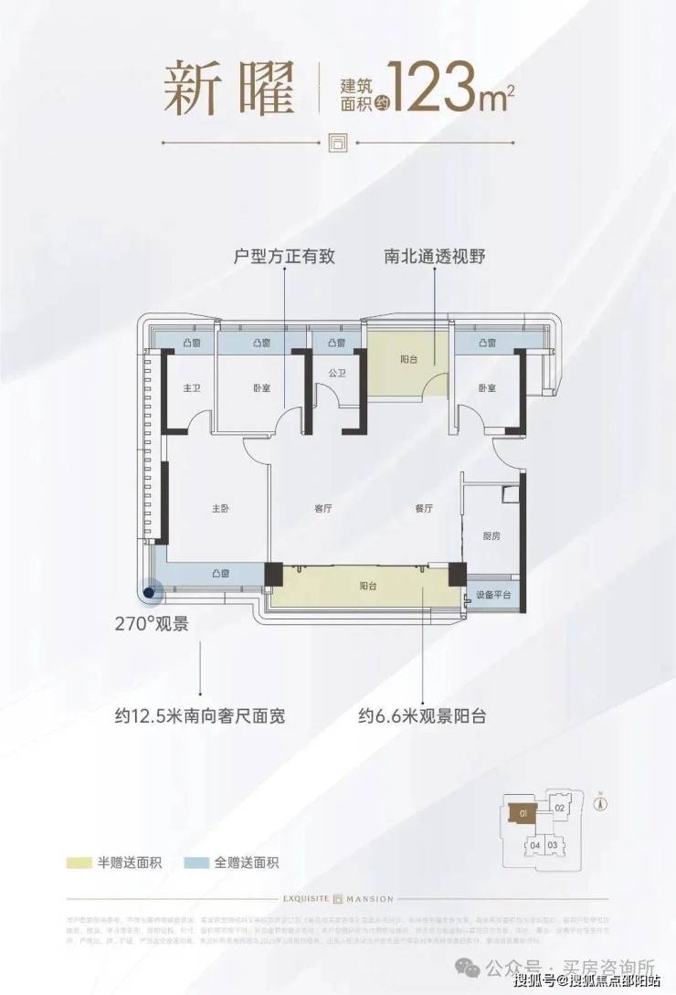 目前91-113㎡户型已经出炉,123㎡户型暂未公布,其中113㎡户型是个亮点,客厅房间基本都是270°转角飘窗采光,使用率高达94%
