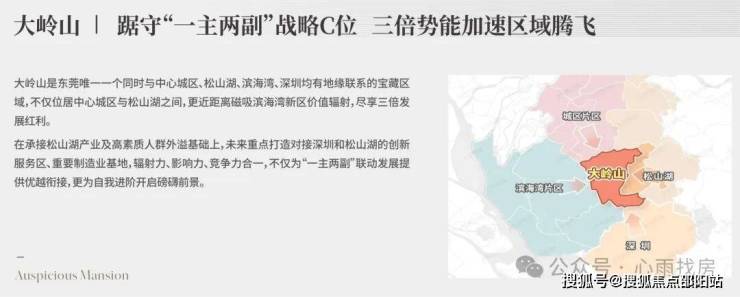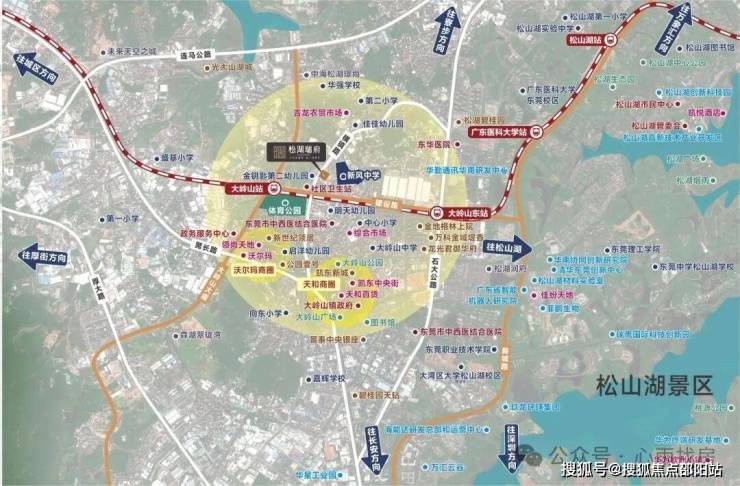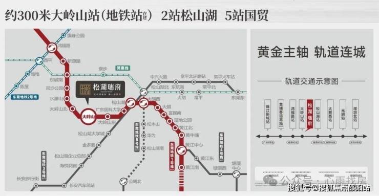 大岭山是东莞仅有1个与城区、松山湖、滨海湾新区、深圳四大板块都接邻的镇,以R1线大岭山站为中心点,规划以高端居住和高品质生活为主的新城中心,松湖瑞府立足建设路轨道沿线发展轴及大岭山大道生态发展轴旁