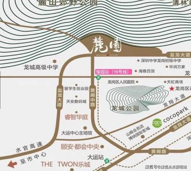*项目距离16号线愉园地铁站约900米,四站可以到大运枢纽站换乘(四轨交汇),大运站乘14号快线(时速120km/h)八站可以到福田港厦北;