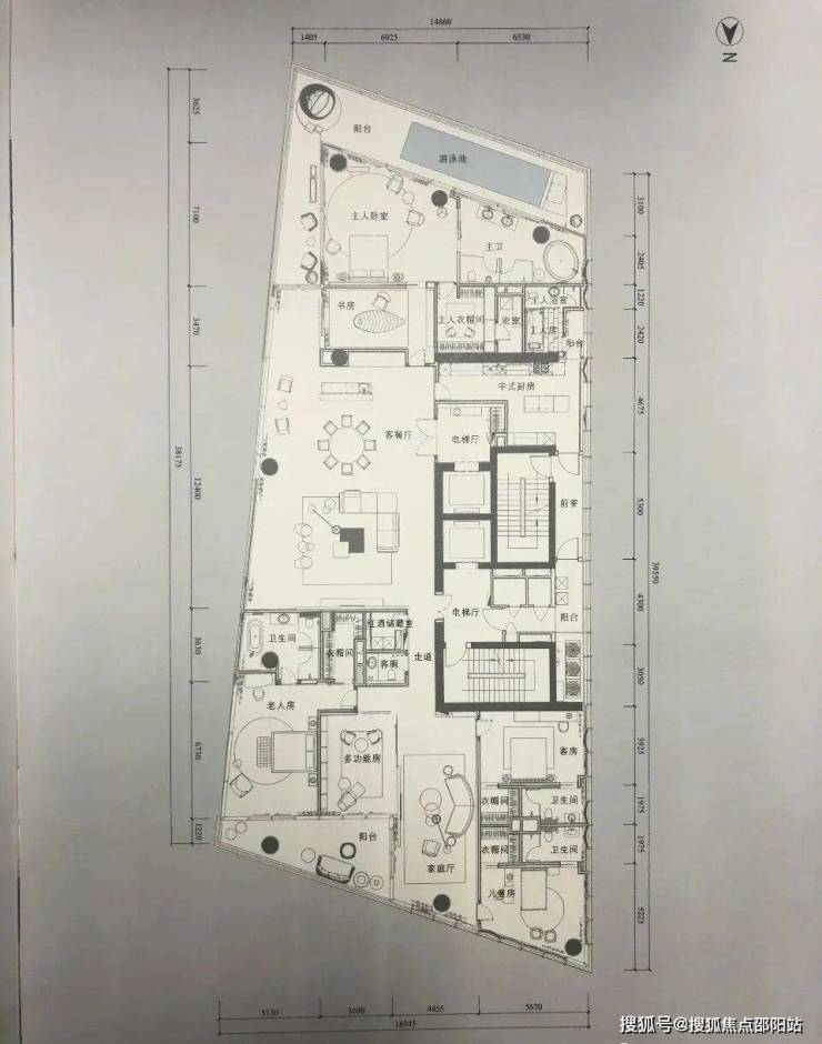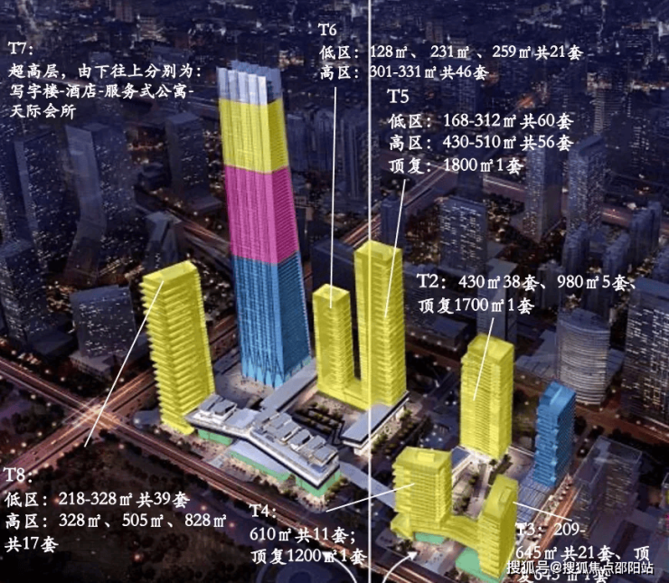 5. 958㎡六房两厅九卫(T7栋,朝东南看全景海景,半层独户,65-70层,总价约4.0-4.5亿)