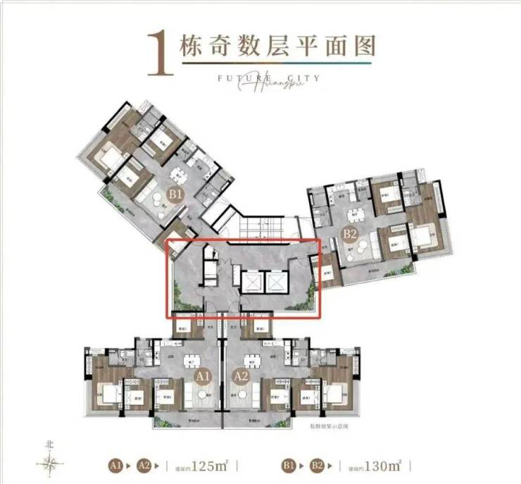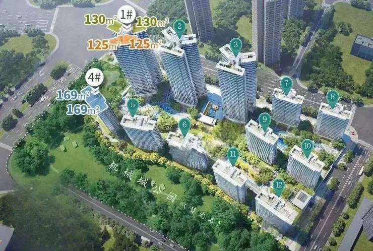将首推1栋和4栋,包含建面约125-130-169平三个面积段,共150套货,有板有塔;其中,板楼占比75%,总高设计16层,两梯两户。
