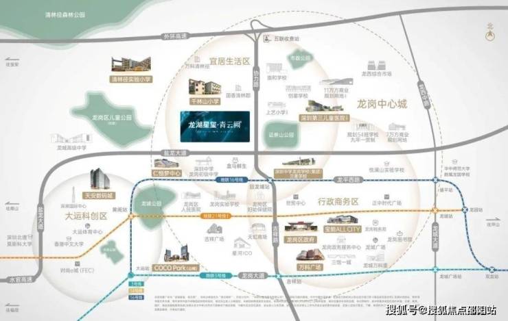 龙湖星玺•青云阙地处龙岗中心城的宜居生活区,与龙岗区政府直线距离约3.5公里,直接锚定中心。