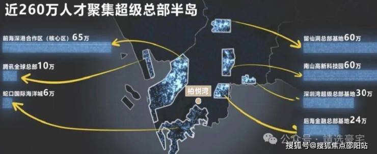 七大全球总部基地,激荡全球资本的湾区超核,由总部经济带串联,吸引大批诸如腾讯、大疆、阿里巴巴等行业龙头企业,以及大批总部企业入驻,未来将吸引260万人才聚集。