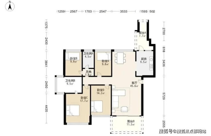 六栋01、02户型——建面约170㎡4房2厅2卫