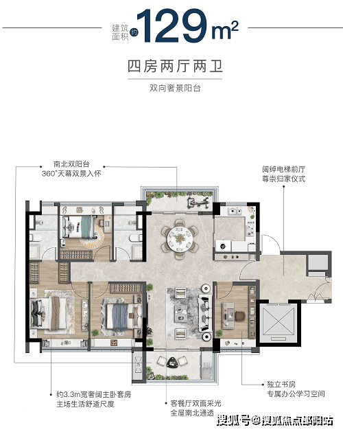 再来看看产品。本次振业天成主推建面约105-165㎡四房户型,改善为主,均为全南向设计。