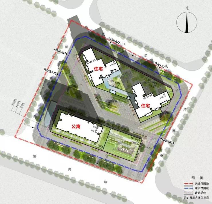 公寓更靠近望海路,距离海边更近,住宅部分则靠后,靠近蓝漪花园以及后面的渔二村。