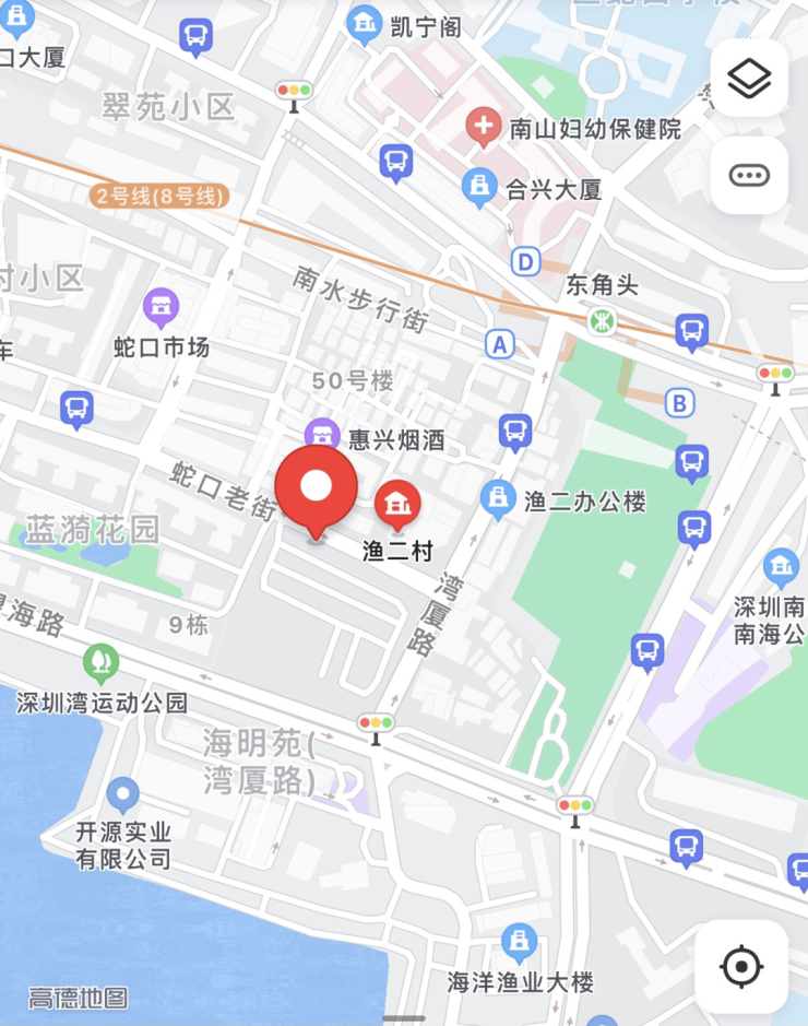 招商渔二村旧改地块在蛇口老街、湾厦路和望海路交汇处。步行220米左右,就能到达最近的2号线东角头地铁站。