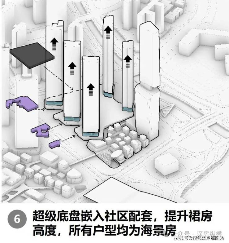 其二,地标重塑与天际线构建。规划以 250 米超塔引领东角头片区的新地标群,并与深圳湾一号、华润春笋等超塔建筑相呼应,共同塑造深港对望的门户意象,强化深圳海岸线的识别度。