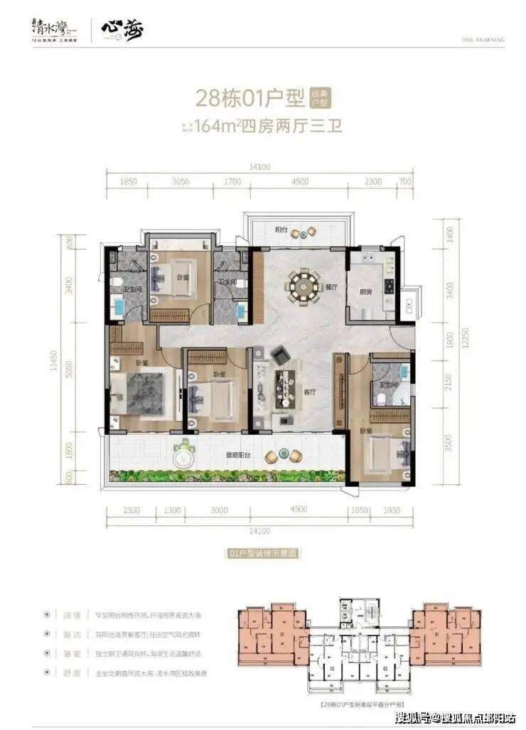 15#05号房、16#01号房、29#01号房141㎡户型,四房两厅两卫15#01号位、16#05号位、28#01、05号、164㎡四房三卫