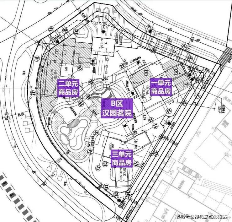 B区由3栋三个单元及裙房组成,其中一二单元层数45层,三单元层数39层,总户数474套,套内面积小于90㎡的有369套,占比77.85%,均为商品住宅。