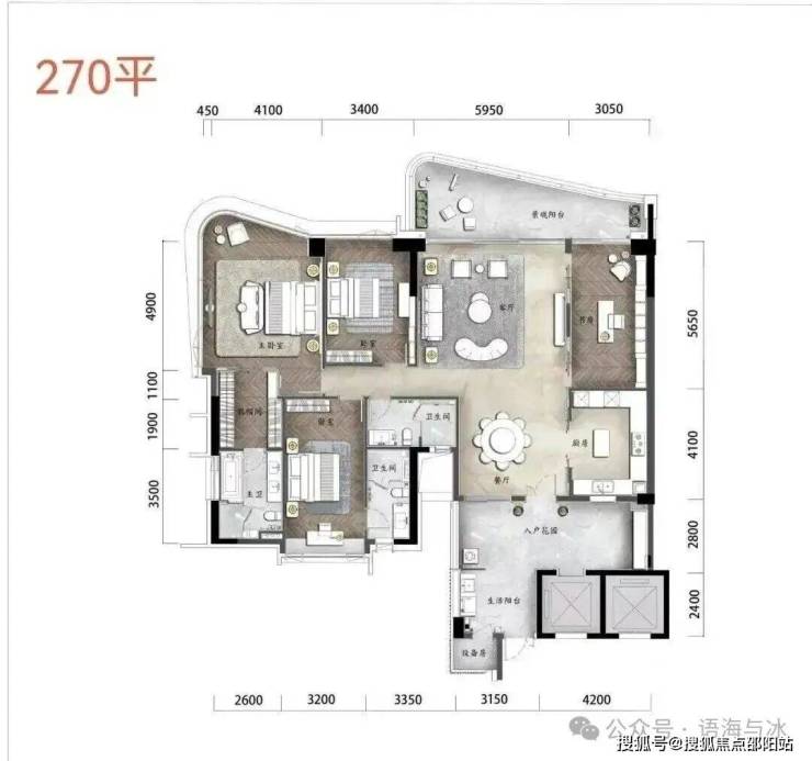 约365㎡5房双套房|2厅|4卫|3阳台+1工人套房