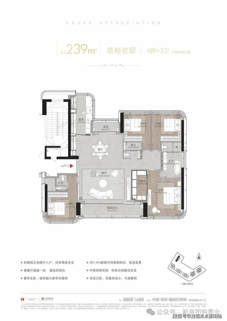 建面约239㎡领袖官邸4房+3卫(T12-01/02)