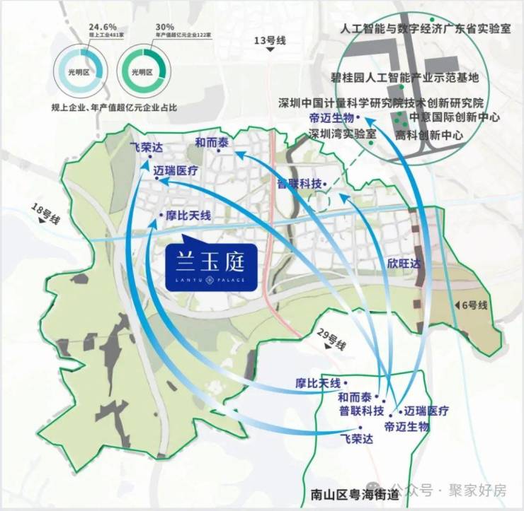 3纵(南光高速、松白路、龙大高速)3横(外环高速、新玉路&光侨路、光明大道)多维路网快速接驳南山、宝安、龙华、福田中心区,高效驰骋粤港澳大湾区。