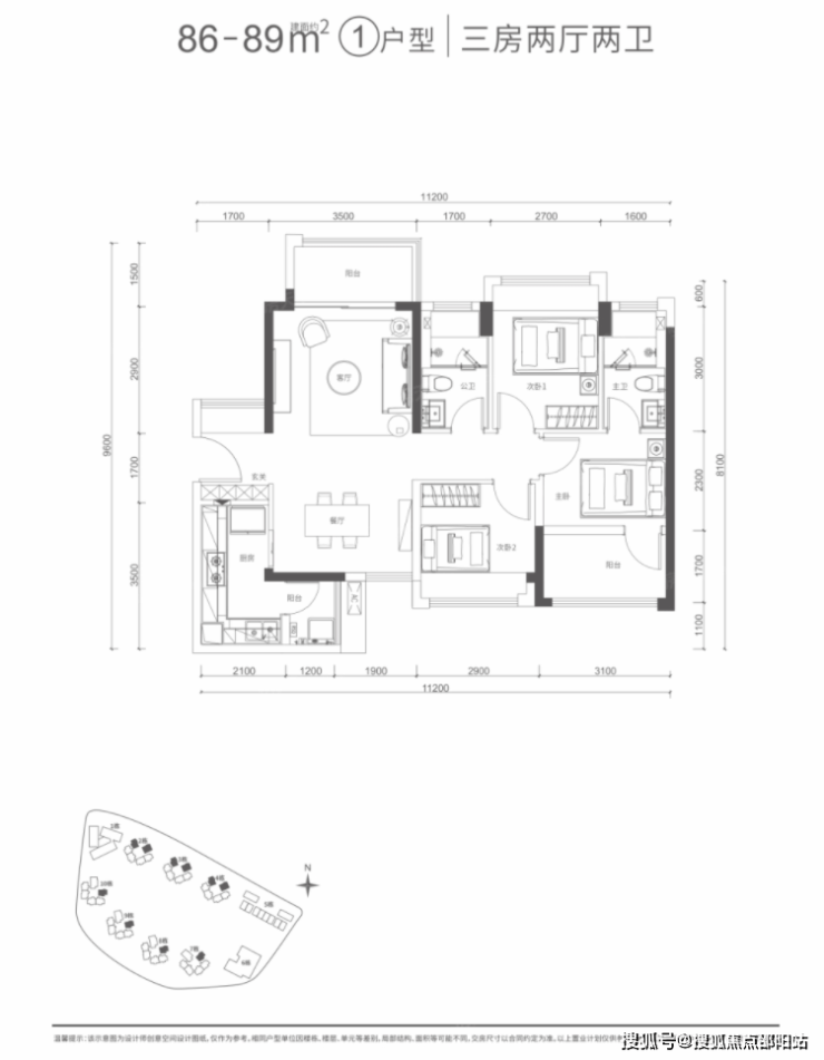 建筑面积约86-89㎡ ②户型