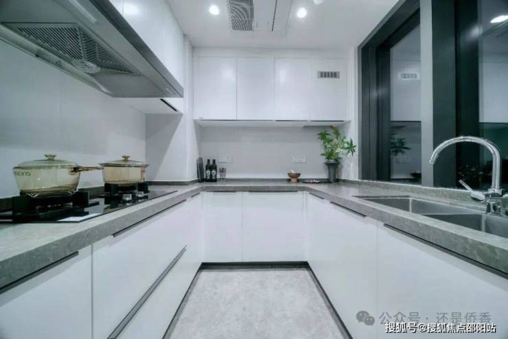 厨房配备嵌入式专用空调,同时配备西门子抽油烟机、燃气灶和嵌入式洗碗机。