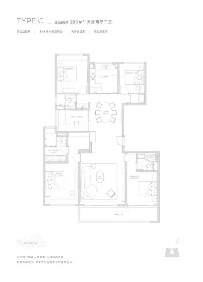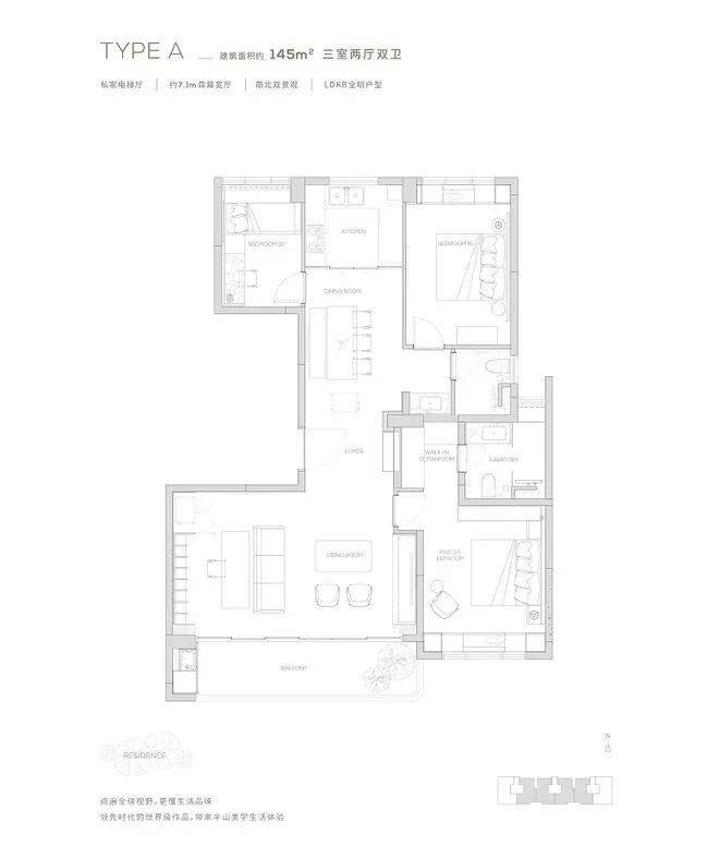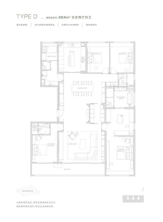 10.3米南向景观阳台-南北双景观-主套步入式衣帽间