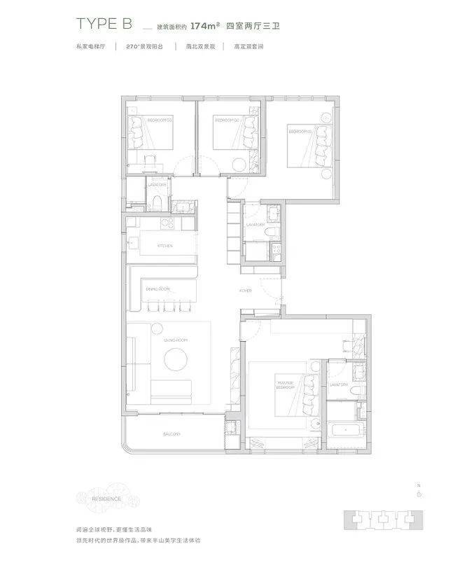 约37万㎡全龄社区,产品涵盖145-320㎡三至五房,私家电梯厅,专梯专户。