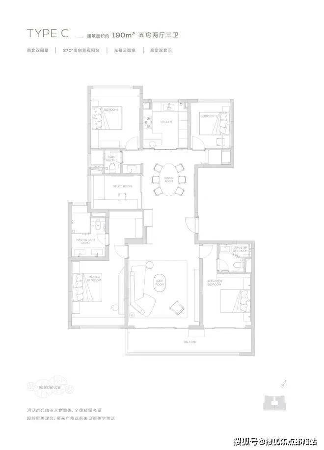 【190㎡户型】南北双园景-光幕三面宽-270度超广角观景视野-经典四叶草布局