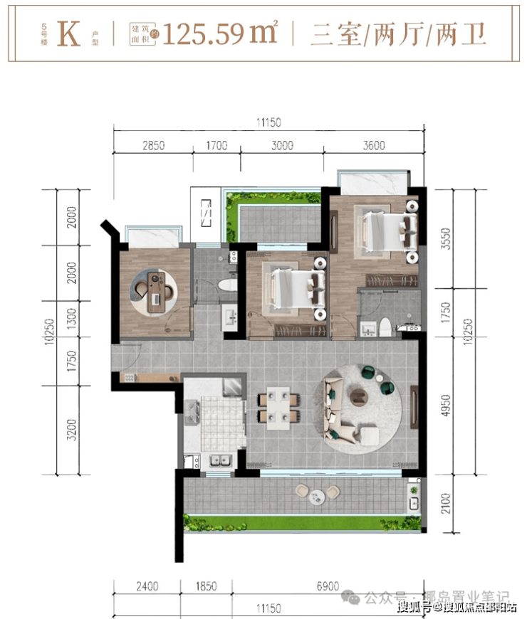 ✨5#楼K户型约125㎡三房两厅两卫