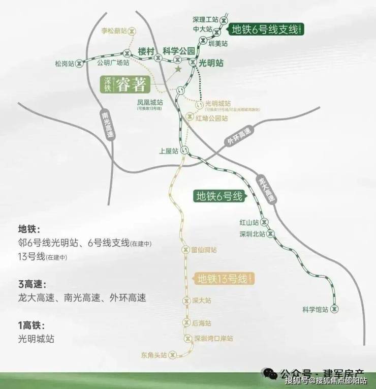 3地铁:邻6号线光明站、6号线支线 (在建中)、13号线 (在建中)