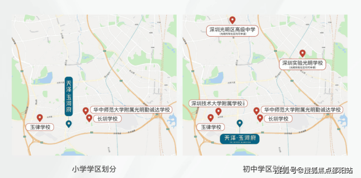 光明区实验学校同心小学、华中师范大学附属光明勤诚达学校(小学部)、光明区玉律学校(小学部)、光明区田寮小学