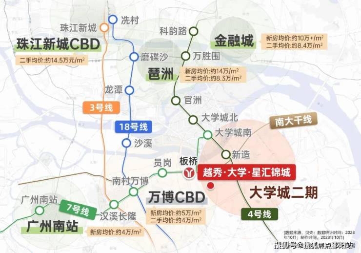 越秀大学星汇锦城属于番禺大学城二期板块,大学城板块从无名小岛到国内顶尖大学园区,板块内的居民主要是教师、教授和地铁4号线琶洲外溢人口。