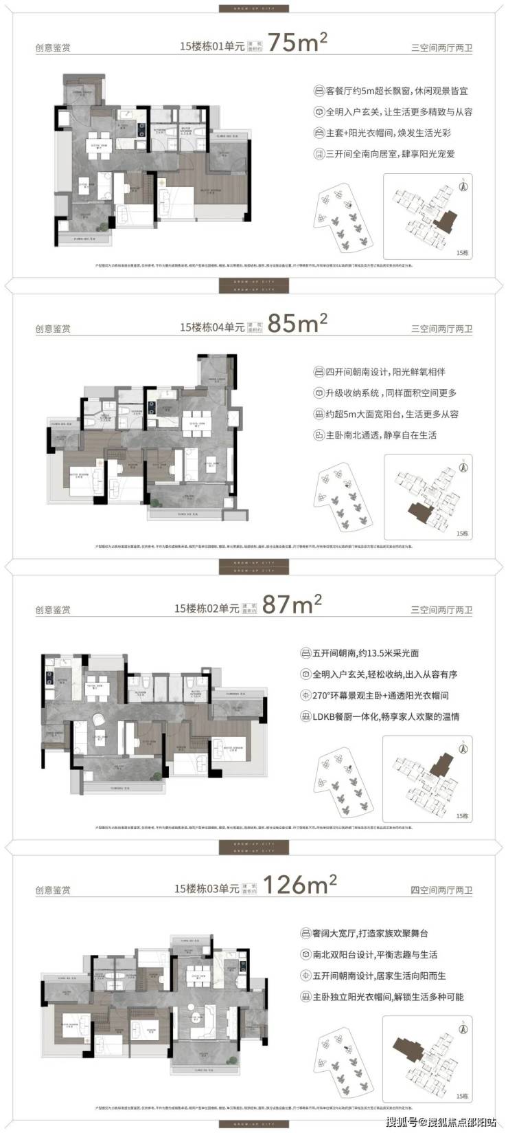 在售户型:建面约75/86/102/125㎡全南3/4空间