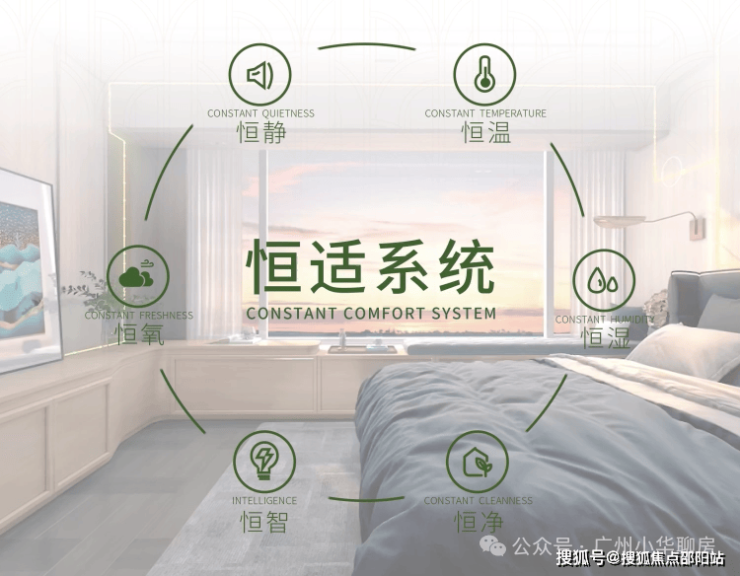 作为广州首个恒适系统科技健康豪宅,引入恒适系统,打造恒温、恒湿、恒静、恒净、恒氧、恒智的健康新生态。