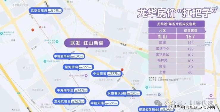 最后,我们来探讨一下价格问题。在整个龙华区中,红山板块无疑是房价的领头羊,二手房近一年内成交了167套房产(数据来源于贝壳数据),无论是成交数量还是成交价格都位居龙华之首。