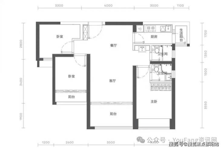 【建面88㎡3居】800万-分布于1栋C座 ,2梯4户,层高3.00米,总楼层31F