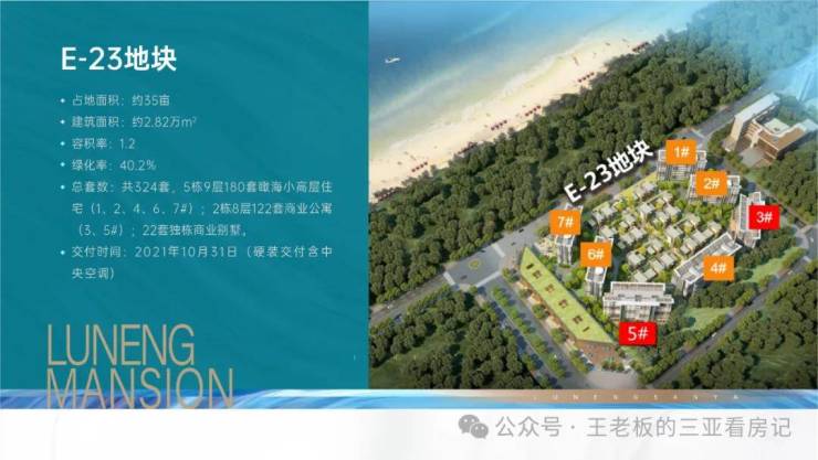 在售E23地块鸟瞰及经济指标瞰海小高层住宅: