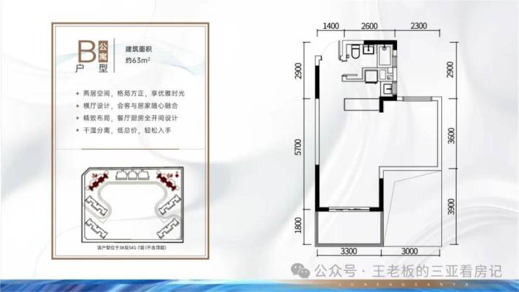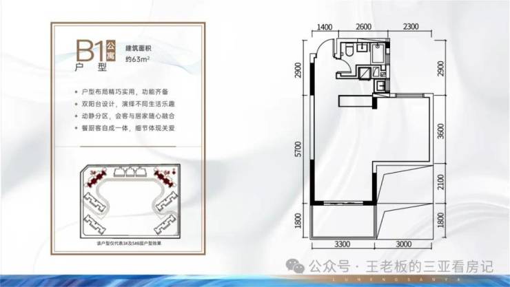 A户型:46㎡1房1厅1卫B户型:63㎡2房2厅1卫B1户型:63㎡1房2厅1卫