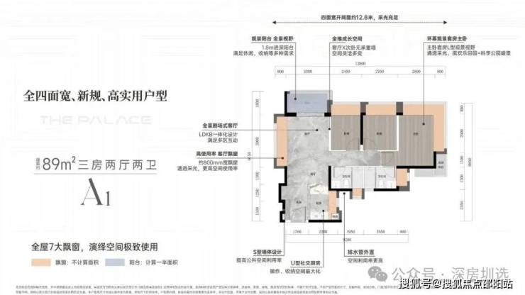 【A1 启创 】「建面约 89m²三房两厅两卫」