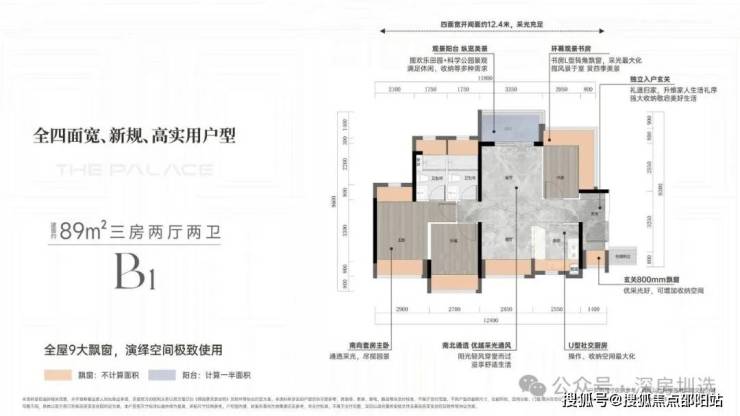 【B1 启创 】「建面约 89m²三房两厅两卫」