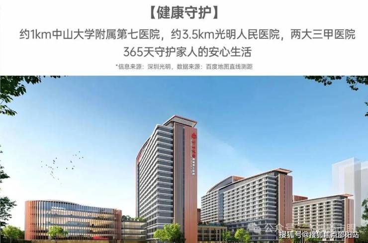 • 【健康守护】:约1km中山大学附属第七医院,约3.5km光明人民医院,两大三甲医院,先进医疗设备,著名医师团队,365天守护家人的安心生活。
